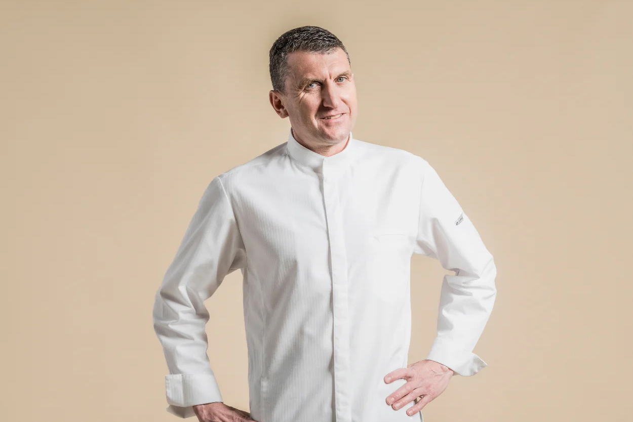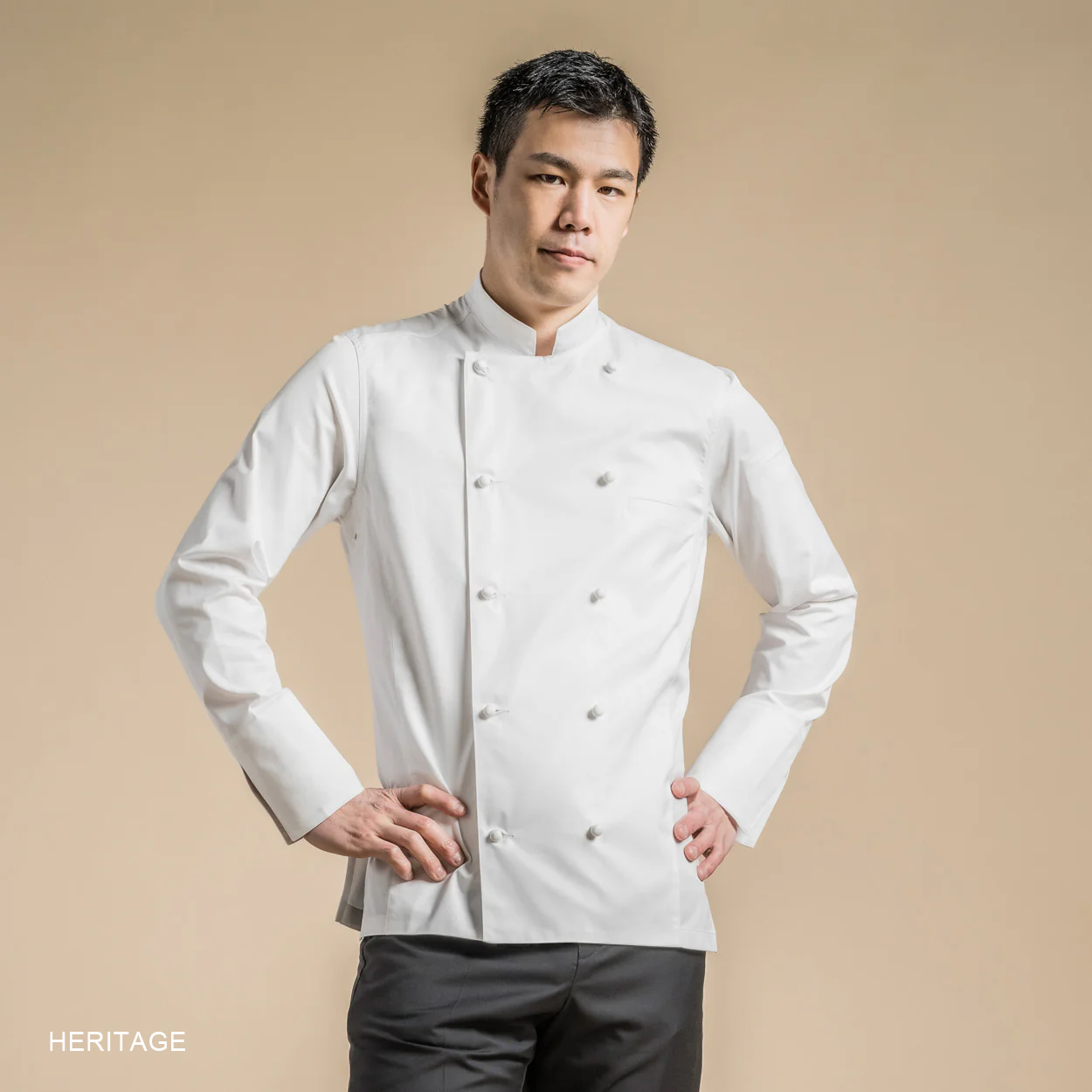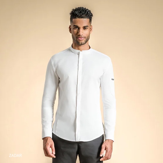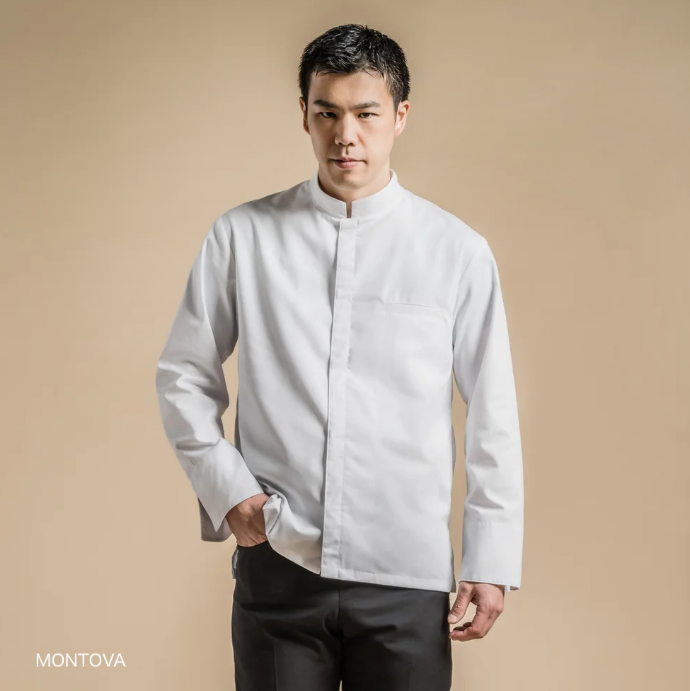 ブランド設立当時は厚手の綿で作られたコックコートが主流の中、蒸し暑いキッチンで料理に専念できるためにはどんなコックコートがあればよいのか。Thierry Bouville氏は、素材や色を自由な発想で組み合わせ、さらにカスタマイズ性に富んだコックコートを創りあげました。デザイン性に加えて快適な着心地であることも重視されています。