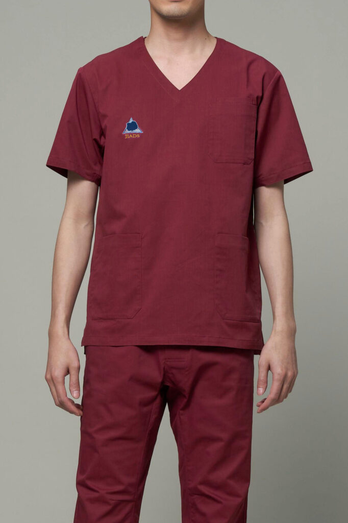 安定感を感じさせるボルドーのスクラブを選んでいただきました。