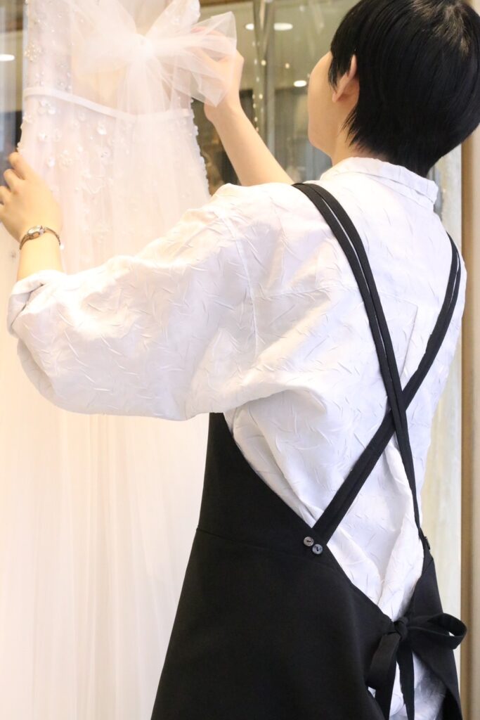 ドレスの持ち運びから着せつけまで様々な動きを快適にサポートする制服は、スタッフにとってモチベーションを上げるアイテムになっていることでしょう。