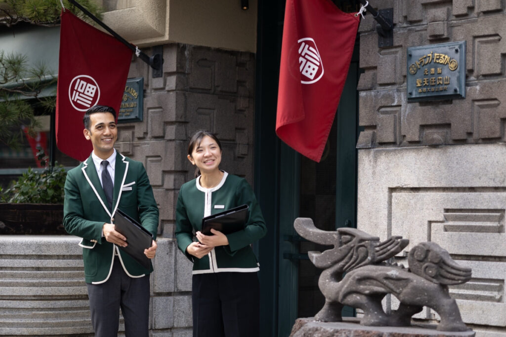 丸福楼の制服は、その精神を現代のホスピタリティへと昇華させたものです。