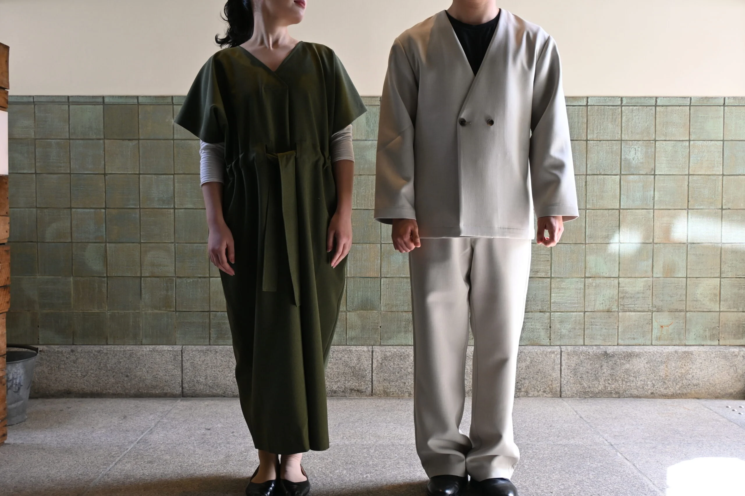 また館内でリラックスしてお過ごしいただくための館内着も導入。キーカラーのグリーンを基調に、女性にはオールインワンを、男性にはノーカラージャケットのセットアップをご用意しています。まるで自宅でくつろぐ時間のように、客室だけではなく、ラウンジやバーでも着用可能なリラックスウェアです。