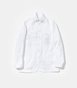 コックコートをワークウェアの要素でアレンジしたデザイン。ポケットの形や配置にこだわり、機能性とおしゃれさを両立しました。キッチンだけでなく、サービススタッフにもおすすめできる一着です。