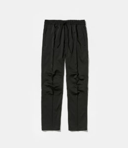 ウエストゴム仕様のテーパードパンツ。膝にはタックを入れ、屈伸や立ち座りの動作をスムーズにサポートします。