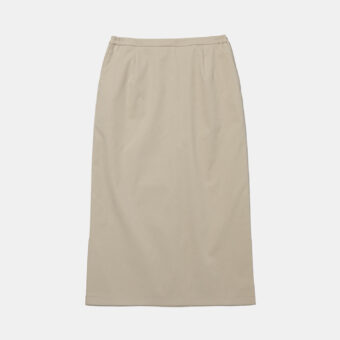 上品なタイトシルエットが美しい、リゾートホテルのフロントスタッフ用スカート。後ろのスリットが足さばきを軽やかにし、動きやすさと洗練された印象を両立。穏やかなベージュがリゾートの空気にやさしく溶け込みます。BL-011とセットアップ着用可能。