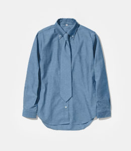 定番のボタンダウンシャツ。生地により、印象を大きく変えることができます。シャツ生地の共布でネクタイを作ると、フォーマルな雰囲気を残しながらも、ワントーンでスマートなスタイリングを楽しむことができます。