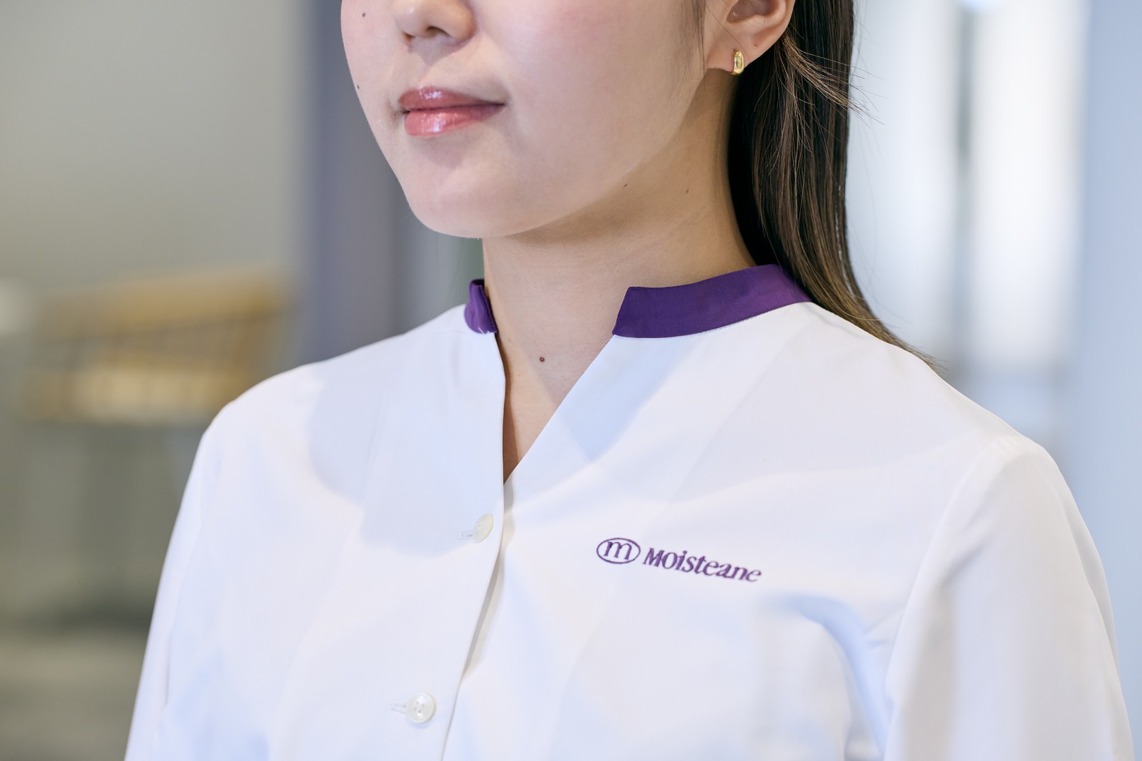「お客様がどの店舗に行っても、どのアドバイザーさんと会っても、モイスティーヌというブランドを感じていただけるようにしたいと思っています。制服はアドバイザーさんの個性を消すものではなく、袖を通したときに『さあ、やるぞ』と気持ちが切り替わる、背中を押してくれる存在であってほしい。